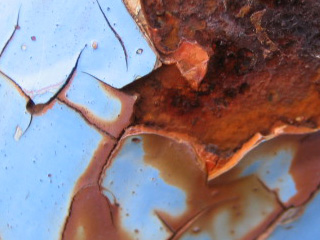公園の遊具の塗装のはがれ。マクロ。