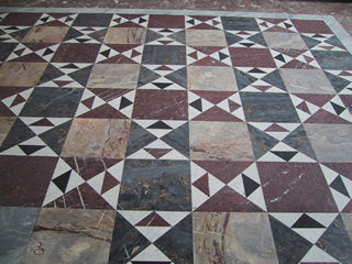 箱根細工のような床面大理石 こっちは化石入り 路面の石 石にも歴史を感じる モンパルナスの丘イーゼルを置く場所の印 四角いふたにもよく見るとPONTAの文字が 床のモザイク 床のモザイク、ベルサイユのマーク