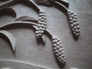 地にはもう少し何か彫った方がいいのか考えている。4月7日 表面はこんなふうでいいのか。 4月7日 もっとはっきり羽を彫った方がいいのか考えている。 4月7日 穂はこんなふう。 4月7日 葉はこんなふう。 4月7日 2ひきはこんなふうになっている。 4月7日 顔を出すうずら。 4月7日 顔を出すうずら。 4月7日 顔を出すうずら。 4月7日 顔を出すうずら。 4月7日 顔を出すうずら。 4月7日 顔を出すうずら。