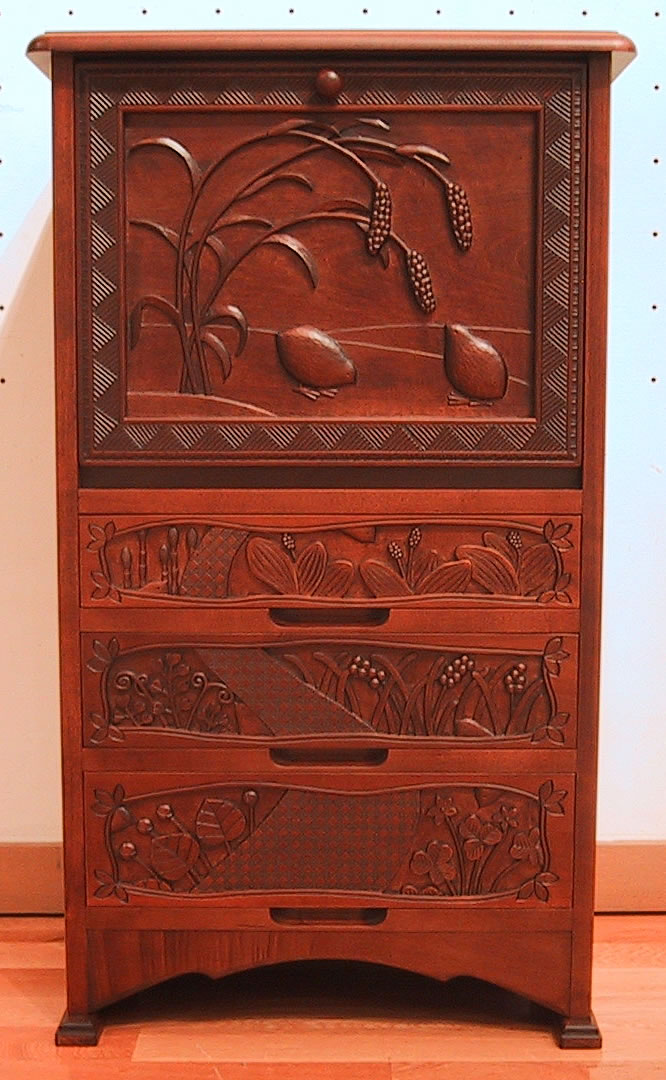 このキャビネットは彫り終えてすぐ塗りに出していた。
