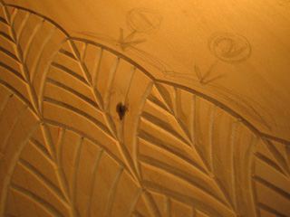 同じことの繰り返しの場合、彫る過程を見本として残しておくとよい。2月02日(月) 深くしたところとまだ浅いところ。