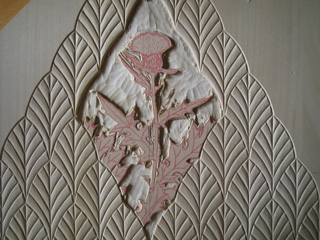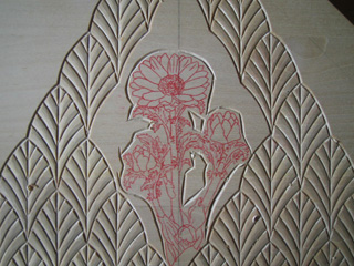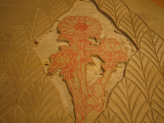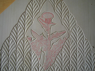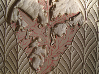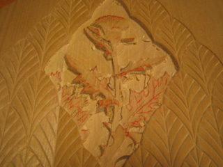 5月2日(日) ぎざぎざの間を深く落とすのが大変なので、葉の動きをつけながら落としていくことにする。