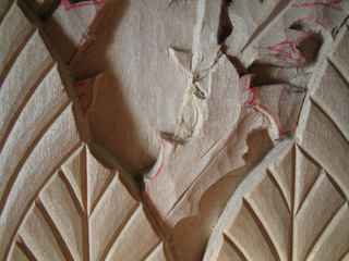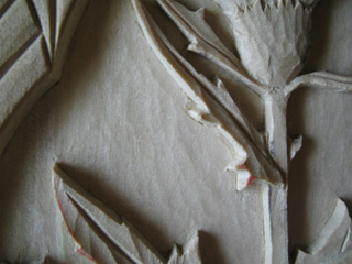 頭のほうは低くするに決まってるので花びらにしきりを入れておき、軽く高低をつけながら地を落とす。