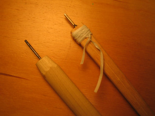 1液と2液を混ぜて使うような強力接着剤の威力はすごい。この割り箸彫刻刀は見た目はみすぼらしいが、普通に使える。