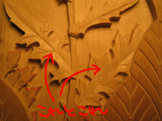 アザミは輪郭と地ならしが大変だったが仕上げの彫りは早くできた。
