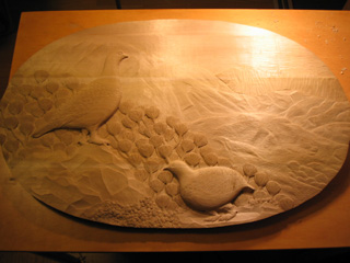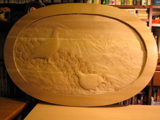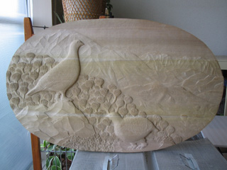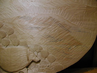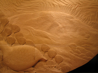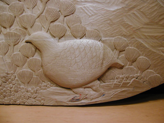 3月29日(水) こちらの鳥も羽の線を彫った。