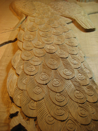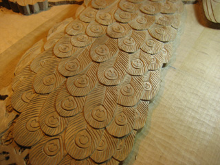 クジャクのレリーフ制作過程 その5