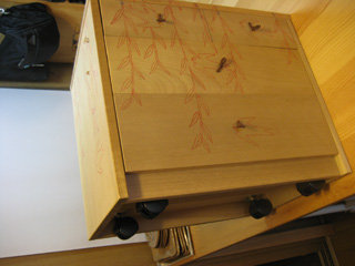 7月27日(日) 引き出しの穴に髪留め用の太いゴムで引き手を付けた。