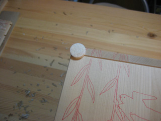 7月30日(水) 彫るときに机に接する面の角をガードする必要がある。家具すべーるを貼ってみたが頼りない。