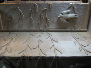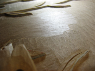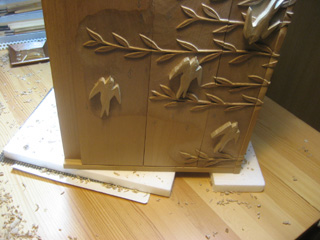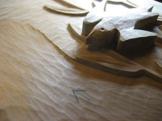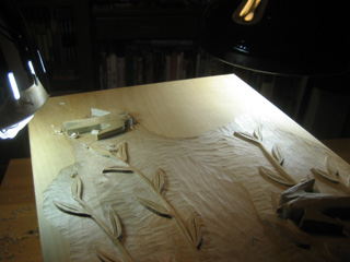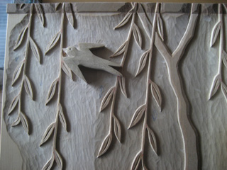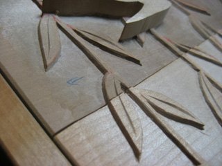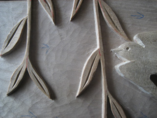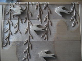 2月16日(月) 側面のつばめをはがさずに彫るため