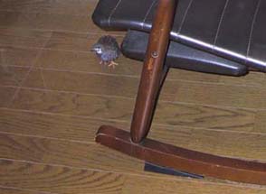 揺り椅子がある。小さな鳥が床を走る。危ない。ちょうど踏みつぶすようなぴったりサイズだ。気をつけるにも限度がある。くつろぐ椅子はこれしかない。でも鳥も時々は、かごから出したい。 椅子が揺れなければいいのだと気づく。