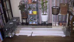 砂浴びをすると砂が飛ぶ。何かで囲った方がいい。昆虫ケースのような透明のプラスチックケースが向いている。明るいし、様子が見れるからだ。以前は大きな昆虫ケースをたおしてその中にバットを置き砂を入れていた。そこで一緒に砂浴びができるようにしていたのだ。しかし、目がとどかないときは、うずとちびを離しておいた方がいいことになり、交代で砂浴び場に入れるように衝立の移動などをその都度することになった。すると、片方が砂浴びをする様子を見て、片方がうらやましそうにする。交代させるのも、わりと手間がかかる。砂浴び場を2つにすればよいことに気づく。出来ればいつでも好きなときに砂浴びができるようにしておきたい。