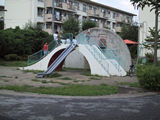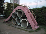 9月4日 コンクリート遊具を撮ってみた。 まん中のすべり台には子供たちが6人登っていて感じがいい。 |