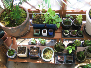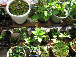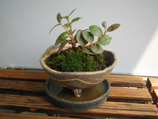 棚2段の手前に小さい横長鉢台を置いたのだ。