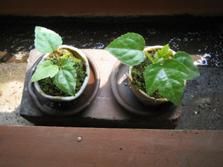 鳥が落としていった種を蒔いたのが育ってきて