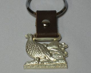 木彫りの雷鳥根付けタイプ、鈴付き。