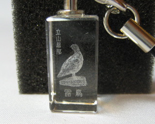 小さいレーザー彫刻ガラス雷鳥ストラップ、1×1×2センチ。