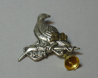 銀の雷鳥ピンバッチ、立山は3015メートルであることがわかる。