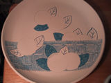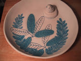 5月8日(火) 陶芸の絵付けをした。今回は伊万里風。 上絵付けまでやるし、なにかと面倒。もうこんな細かい図柄はごめんだ。 左のは色鉛筆で描いた下絵。 皿に載っているのは絵の具を擦る道具。うずら仕様にした。 |