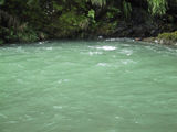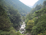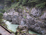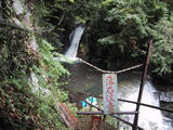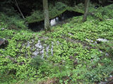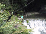 | おばさんが何か洗っているのだ。 ここがおばさんの出入り口らしい。 奥にも滝が。落石注意、立入禁止。 |