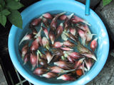 10月3日 今日はうずのつめを切った。 ちびはガラスのかえるとビー玉は見に来てつついたりするが たこのまくらを見せると逃げていく。 |