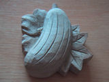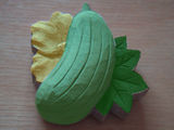 8月29日(水) 昨日と今日でブローチのようなものを作った。 帯留めを作ってと言われていたので試しに作ってみたのだ。 まんじゅうもどきはブローチピンをつけた。 ヘチマはまだピンもつけてないし彩色もしてない。 右のはフォトショで色つけしてみた、見本。 帯留め用の金具を手に入れてないのでまだまだ試作だ。 |