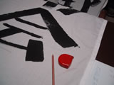 下敷きに染みた墨が布を移動した時に白いところについてしまったら終わりだ。