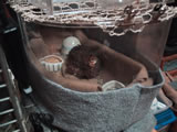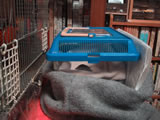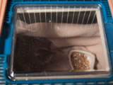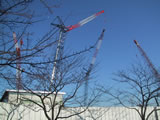 1月12日(日) 近所の巨大クレーン。 どうして倒れないのか不思議だ。 ちびが5日に具合が悪くなったが今日で1週間。 少しずつ良くなってきた。 奇跡的な回復だと思う。 とはいえ、まだ体の動きが不自由だ。 行きたい方向に行くことが出来ない。 足に蹴る力はあるものの、思うように動かない。 平らなところでは体が安定しないで倒れてしまう。 えさと水は口元に差し出してやらないと、食べたり飲んだり出来ない。 自分で食べられるようになってくれればいいんだけど。 小さな飼育ケースにフリースをでこぼこに入れ、ソフトあんかの上に置いている。 ケースの外にピタリ適温という小動物用のヒーターを立てている。 そして、そのまわりをフリースで覆っている。 今日はケースを一回り大きくした。 餌入れと水入れを隅に置いてみた。 まだそこにたどりつくことは出来ないみたい。 私は風邪ひいた。熱が出たが、薬でさがった。