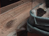 | 4月7日(月) 昨日、姫うずらメスのまるちゃんを迎える。 ペットショップにちょうどいてくれたのだ。 まるちゃんは成鳥。卵を産んでいるという。 たぶん若いメスだと思う。 まるちゃんは動じない性格のようだ。 入ってきた小さな箱のふたを開けるとあたりまえのように出てきて部屋を散策。 通路かごにも鳥かごにも、前からいるかのように入り、走る。 とらの威嚇もなんのその。ちょっと見てない間に卵を産んでいた。 かごに手を入れても動じない。すぐに手から小松菜を食べた。 まるちゃんはまるい。よく食べる。とらの3倍以上食べる様子。 たまごを産むとはいえ、ちょっと食べすぎじゃないかしら。 まるちゃんは昨日、砂を見ても興味なさそうだったが 今日は砂浴びをするとらの様子を見たからか、砂浴びをした。 ちびの様子は相変わらずだ。 足と翼は思うようには動かない。 昨日、ケースに敷き草を少し入れてみたら、草掘り遊びをしている。 |