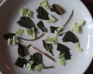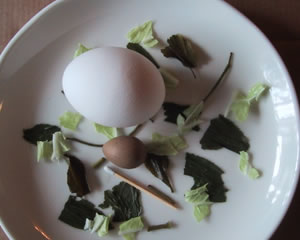 茶葉とマッチとちぎったキャベツとたまごとまるちゃんのたまご。