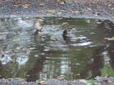 水浴びするスズメ