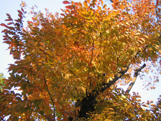 めずらしく紅葉しているケヤキ。まわりのケヤキは不調。