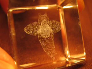 ガラス彫刻のクリオネ。2センチ角。マクロ。