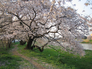 土手の桜はのびのびと枝を拡げていて気持ちがいい。