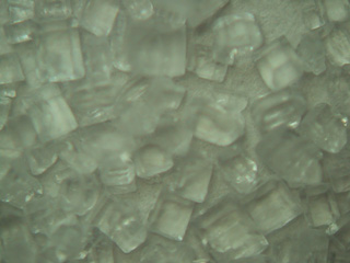 結晶の底面あたりにはピントが合うが上面には合わない。