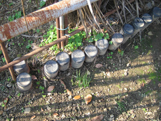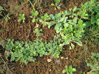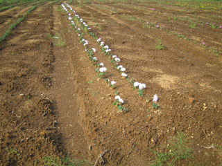 菊畑の菊。赤土に挿し芽。短くても花が咲いている。