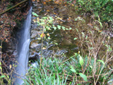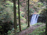 ダム式の滝の落ちる所の奥