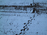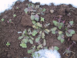 1月8日(月) 昨日の夜、雪が降った。ちょっと積もったが、午後にはほとんど溶けてしまった。 畑に残っていた雪。がんばる草。もう消えそうな道路の雪。 |