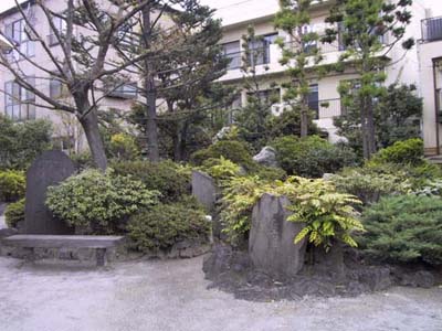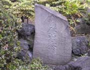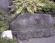 碑の下の方は富士山の溶岩のようだ 。登山記念と書いてある。富士講の人たちが立てたようだ。まわりのごろごろした石は富士山の溶岩だろう 。 山頂に人がいる。山頂には富士山の形の岩が立っている。画面の右下の白っぽい四角い石に何合目かが書かれている。